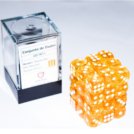 CONJUNTO DE DADOS 36 UN TRANSLUCIDO DOURADO E BRANCO