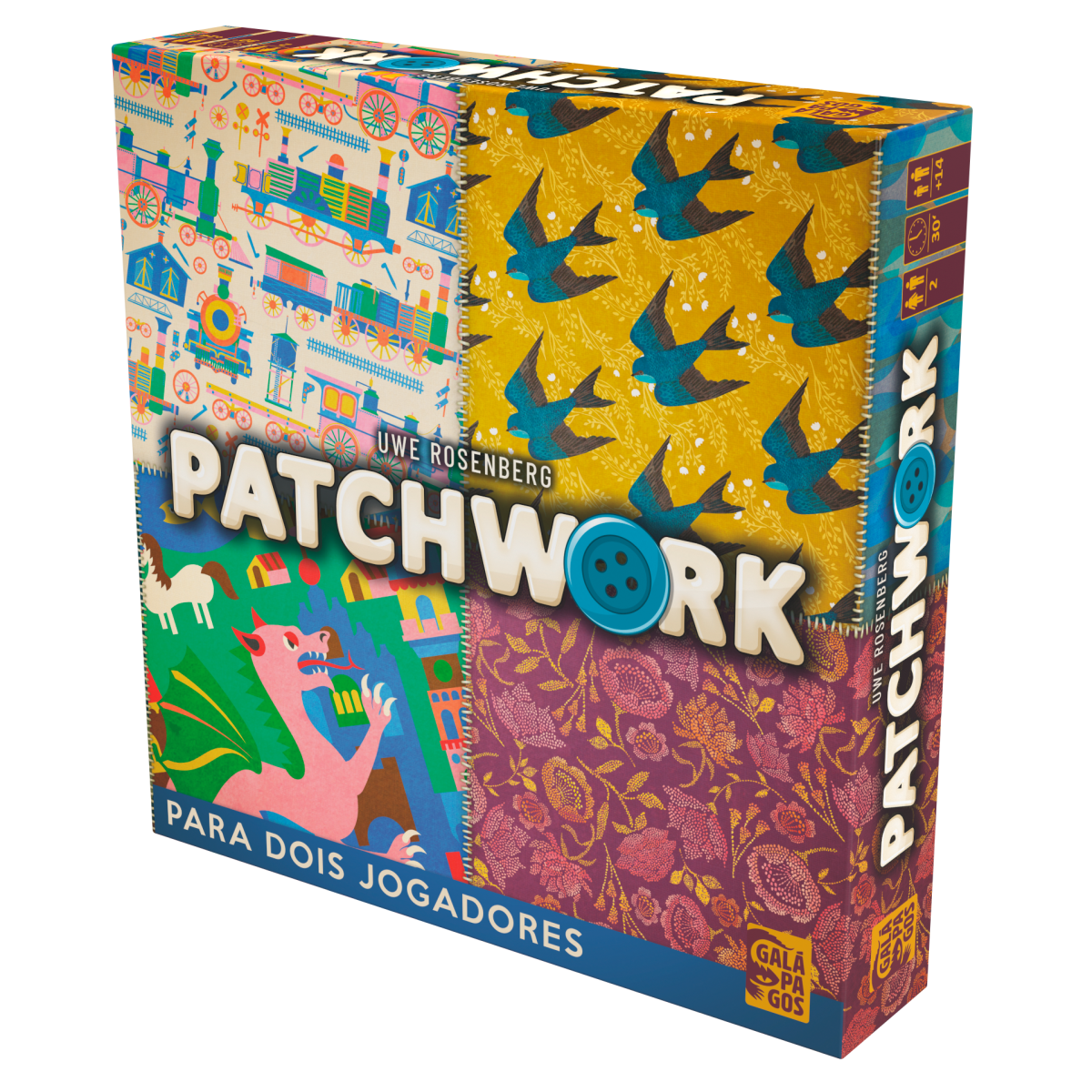 Tantos pedaços e retalhos de pano espalhados – hora de fazer uma linda colcha com eles! Isso requer tempo e esforços consideráveis, e um suprimento constante de botões. EDITORA CRIAÇÃO: Uwe Rosenberg JOGADORES: 2 MECÂNICAS Colocação de Peças, Linha de Tempo COMPONENTES