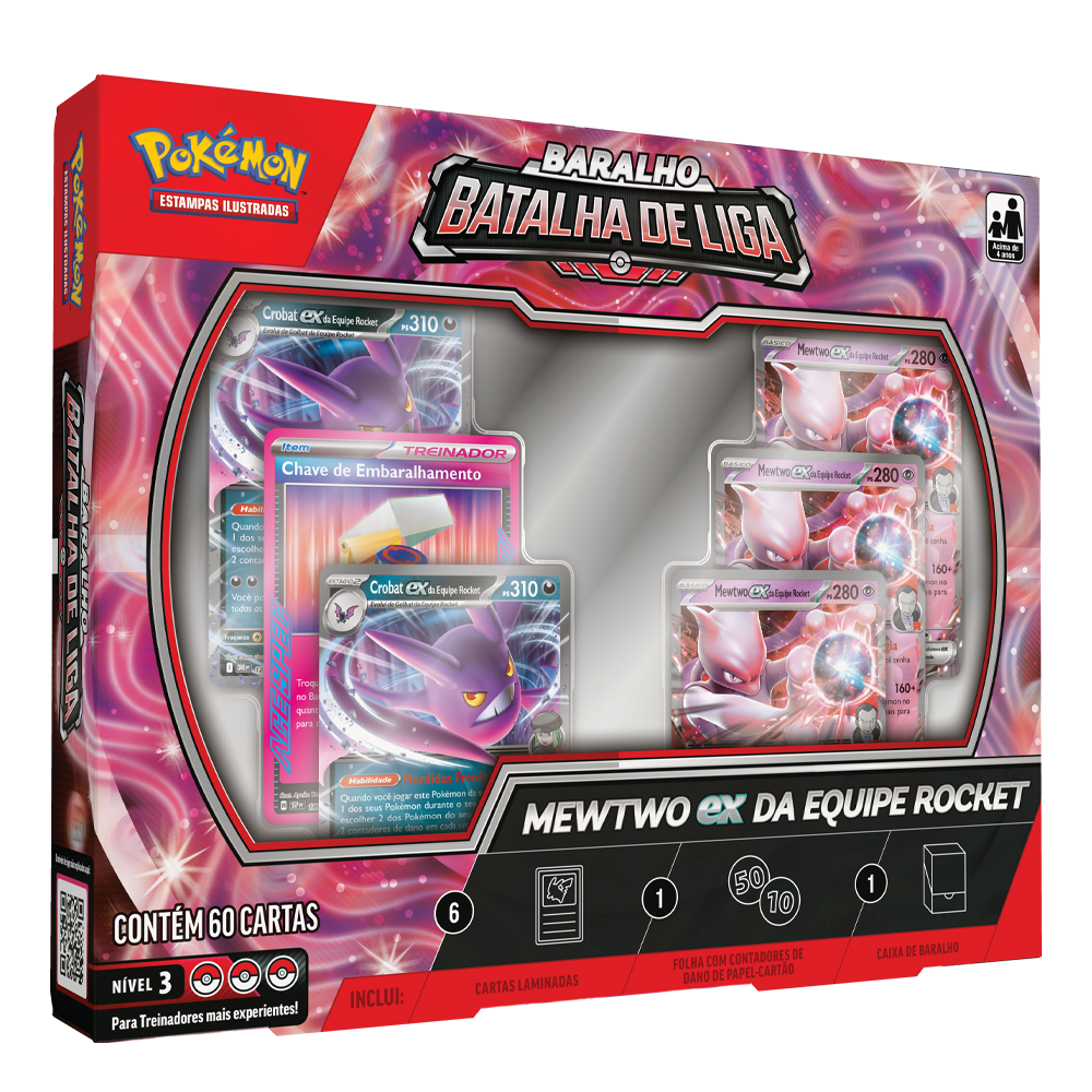 Domine batalhas com o poder sombrio da Equipe Rocket neste Baralho Batalha de Liga com Mewtwo ex da Equipe Rocket! |