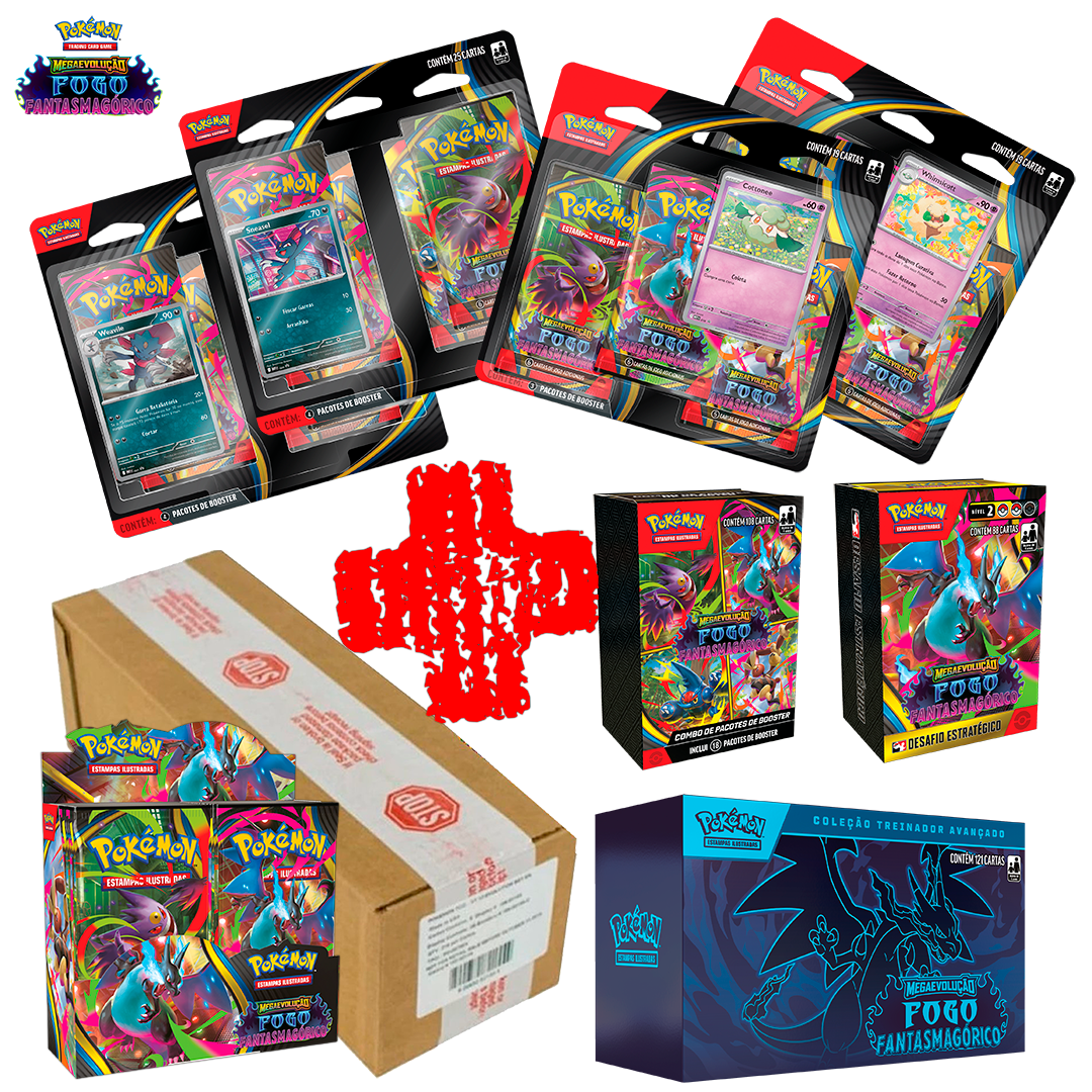 NA COMPRA DE UM POKEMON ME02 FOGO FANTASMAGORICO SUPER COMBO, VOCÊ GANHA UM FICHÁRIO GAMEGENIC ZIPUP 8 POCKET. * PROMOÇÃO VÁLIDA ATÉ 14 DE NOVEMBRO DE 2025 . ESTE PRODUTO É UMA PRÉ-VENDA. O LANÇAMENTO É PREVISTO PARA 14 DE NOVEMBRO DE 2025. . Fogo Fantasmagórico do Pokémon Estampas Ilustradas vai trazer uma dose extra de Pokémon de Megaevolução poderosos ao Pokémon Estampas Ilustradas, focando em Pokémon de tipos Fogo e Escuridão. Os jogadores podem esperar por descobrir e colecionar cartas com Mega Charizard X e Mega Gengar, bem como novas cartas de Pokémon ex, que vão estrear na série Megaevolução. . Além disso, os jogadores vão poder continuar explorando os estilos de arte recém-apresentados nas cartas Rara Ultra dos Pokémon ex de Megaevolução, que podem apresentar uma silhueta da versão comum do mesmo Pokémon no plano de fundo da ilustração. . Acenda um espírito abrasador de batalha! Chamas azuis cauterizantes rasgam um campo escuro de batalha enquanto Mega Charizard X os observa seus oponentes das alturas! Com um calorão intenso desafiando o calor, a figura sombria de Mega Gengar ex emerge lentamente, e os dois Pokémon se preparam para o combate. Dispostos a provar sua força, Mega Heracross ex, Mega Lopunny ex e muitos outros Pokémon se alinham para dar tudo de si na expansão Mega Evolução – Fogo Fantasmagórico do Pokémon Estampas Ilustradas! . Aviso sobre o Produto Imagem Meramente Ilustrativa