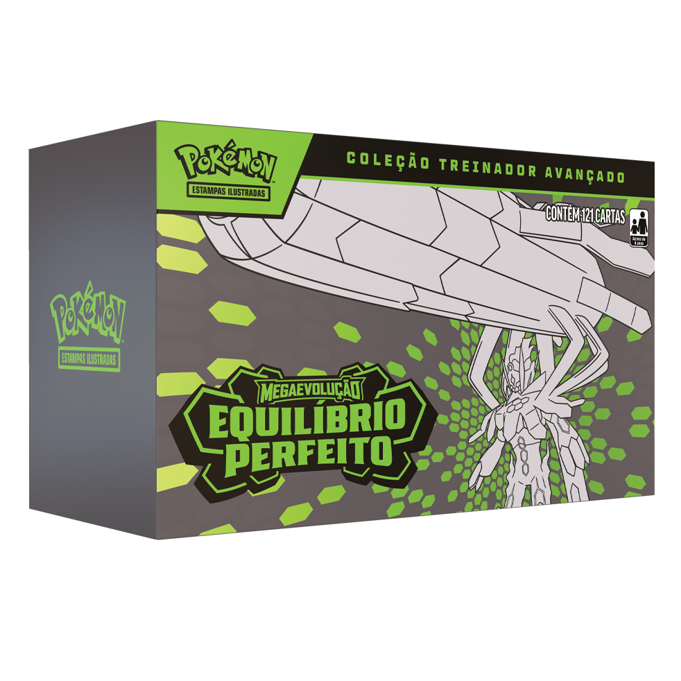ESTE PRODUTO É UMA PRÉ-VENDA. O LANÇAMENTO É PREVISTO PARA 27 DE MARÇO DE 2026. EDITORA JOGADORES: 2 COMPONENTES A Coleção Treinador Avançado de Megaevolução — Equilíbrio Perfeito do Pokémon Estampas Ilustradas contém:• 20 pacotes de booster de Megaevolução — Equilíbrio Perfeito do Pokémon Estampas Ilustradas! • 1 carta laminada promocional com arte expandida de Tyrunt! • 65 capas para cartas! • 6 dados para usar como contadores de dano! • 1 dado para jogada de moeda válido para competições! • 1 moeda de plástico! • 1 caixa de colecionador para guardar tudo! • 1 carta-código para o Pokémon Estampas Ilustradas Live! |