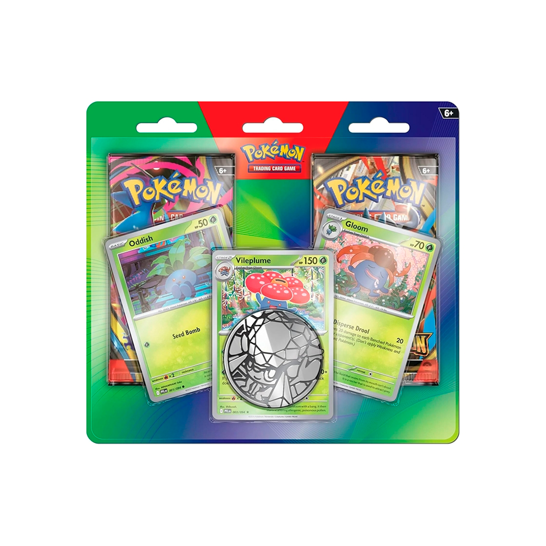 Dê um upgrade na sua coleção! Expanda sua coleção com cartas brilhantes (foil) de Pokémon TCG com Oddish, Gloom e Vileplume — além de uma moeda metálica e dois pacotes de booster de Pokémon TCG! Um novo "Blister Duplo Aprimorado", apresentando variantes holográficas cosmos de Oddish, Gloom e Vileplume da coleção Phantasmal Flames ! Ele virá com dois boosters e uma moeda metálica da Diancie. Cada pacote de booster de Pokémon TCG contém 10 cartas, 1 Energia Básica e 1 carta de código para o Pokémon TCG Live. Os pacotes de booster variam conforme o produto. Para aprender a jogar Pokémon TCG, visite Pokemon.com/tcgrules. Expanda a sua coleção de Pokémon Estampas Ilustradas com pacotes de booster de '10 Cartas Adicionais. EDITORA JOGADORES: 2 COMPONENTES