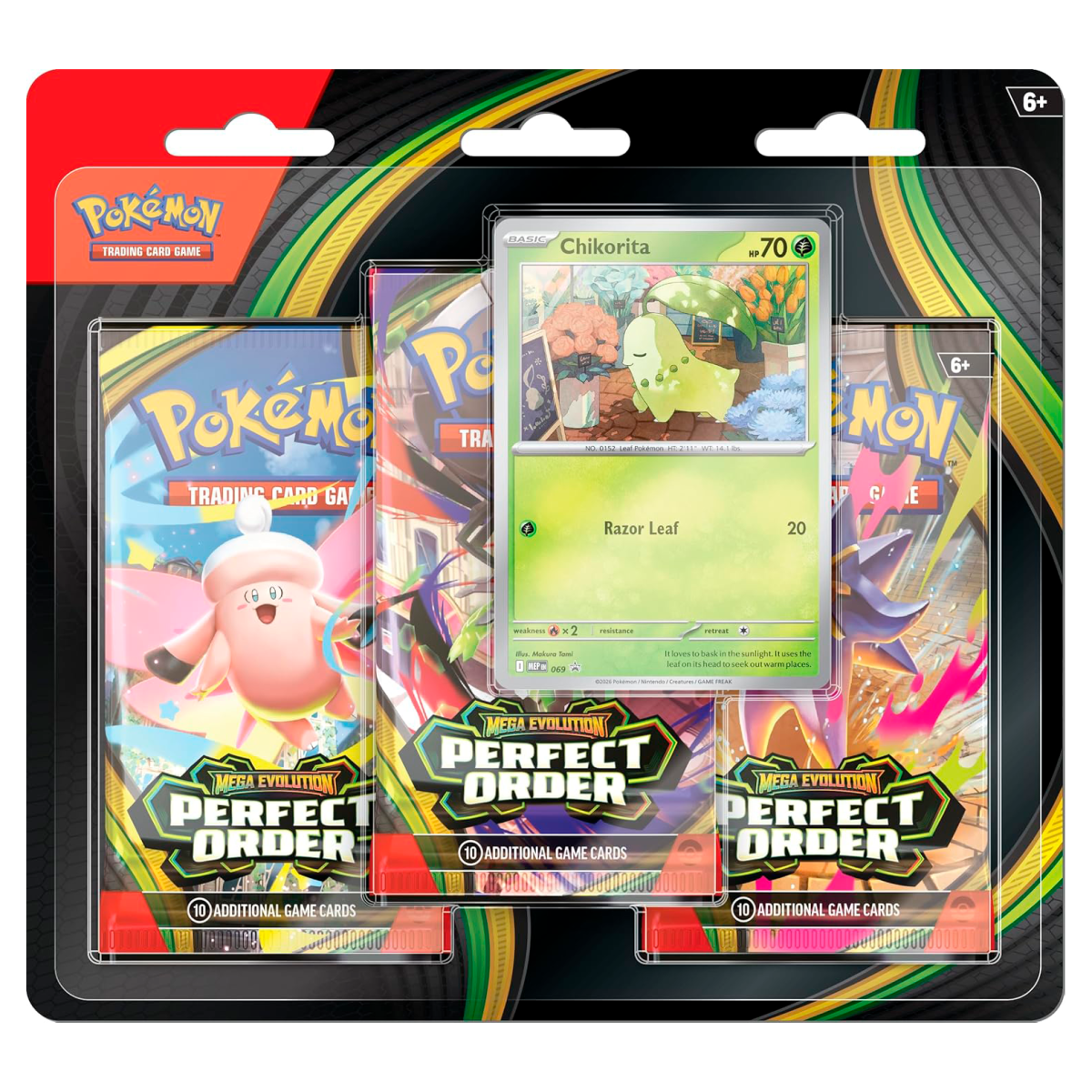 ESTE PRODUTO É UMA PRÉ-VENDA. O LANÇAMENTO É PREVISTO PARA 27 DE MARÇO DE 2026. EDITORA JOGADORES: 2 COMPONENTES O Triplo Pack vem com 3 Pacotes e 1 Carta Promo. Cada pacote de booster de Pokémon TCG: Mega Evolution—Perfect Order contém