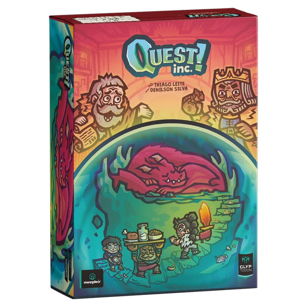 Em Quest Inc., cada jogador é dono de uma empresa especializada em realizar missões para os habitantes dos Reinos Lembrados, as chamadas Quest Inc. O seu objetivo é ser a empresa com mais dinheiro ao final do jogo. Aviso sobre o Produto Imagem Meramente Ilustrativa EDITORA CRIAÇÃO: Thiago Leite JOGADORES: 2 a 5 MECÂNICAS COMPONENTES
