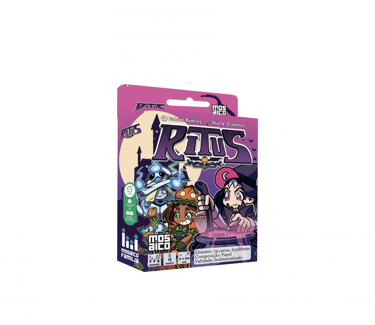 Bem-vindos à Escola de Bruxinhas e Feiticeiras da Triora! Em “Ritus” vocês são alunas das antigas artes arcanas dessa escola de magia, porém, aqui os testes são difíceis e exigem muita sabedoria das aprendizes de feiticeiras! EDITORA CRIAÇÃO: Gabriel Ramirez JOGADORES: 2 a 4 MECÂNICAS Gerenciamento de Mãos COMPONENTES