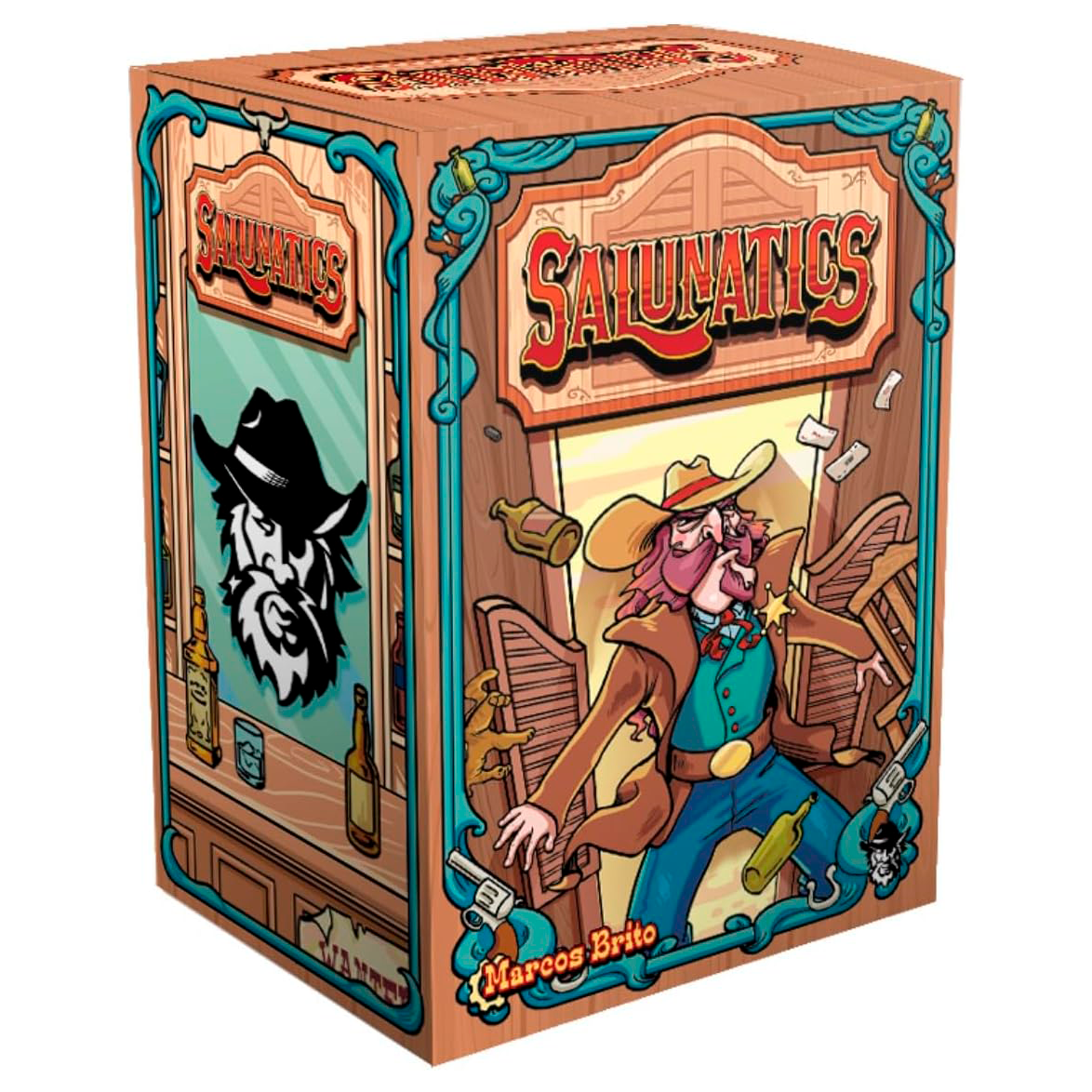 Salunatics é um jogo de blefe, onde vocês estão no meio de um Saloon cheio de malucos e encrenqueiros, e o único jeito de escapar é dando pistas (falsas ou não) para o Xerife sobre o causador de toda essa confusão. EDITORA Bucaneiros CRIAÇÃO: Marcos Brito JOGADORES: 3 a 5 MECÂNICAS Apostas e Blefes, Toma Essa COMPONENTES