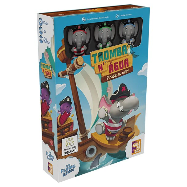 Tromba N’Água é um jogo para famílias e crianças baseado na mecânica de force a sua sorte, colocando as pessoas diante de dilemas em que o mais importante é saber quando parar de apostar em busca de mais tesouros. Tente pegar os tesouros do baú do Capitão Girafa, ao mesmo tempo em que acusa os seus companheiros piratas. Aviso sobre o Produto Imagem Meramente Ilustrativa EDITORA CRIAÇÃO: Florian Sirieix, Benoit Turpin JOGADORES: 2 a 4 MECÂNICAS Fim por Morte Súbita, Force sua sorte, Perdedor Único, Toma Essa COMPONENTES
