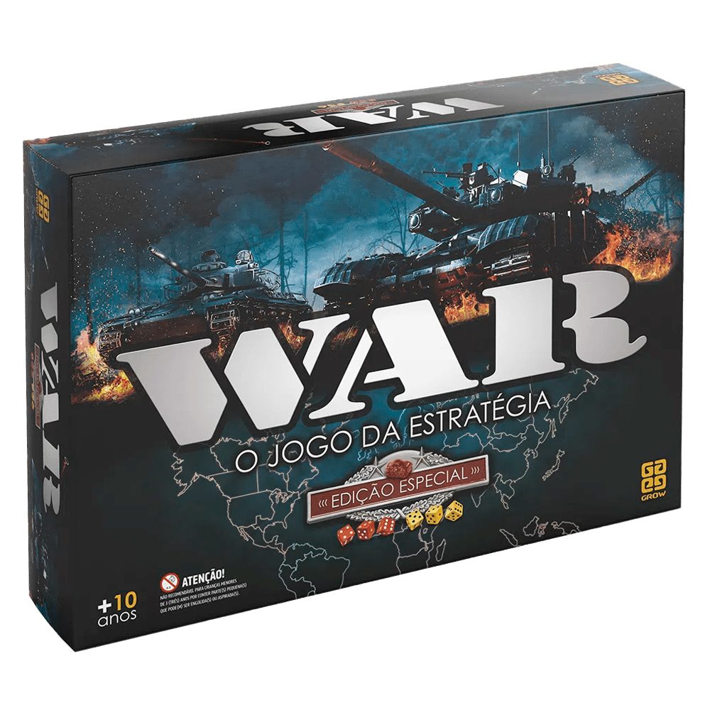 O melhor jogo de estratégia de todos os tempos, em versão de luxo! Jogue com miniaturas de soldados e tanques representando os exércitos em uma tabuleiro maior. O jogo ficou muito mais real! EDITORA CRIAÇÃO: JOGADORES: 3 a 6 MECÂNICAS: Controle/Influência de Área, Movimento de Área, Rolagem de Dados COMPONENTES 6 conjuntos de exércitos de cores diferentes 6 caixas plásticas com tampas 14 cartas-objetivos 42 cartas de territórios 2 cartas curingas 3 dados vermelhos 3 dados amarelos 1 manual de instruções SLEEVE |